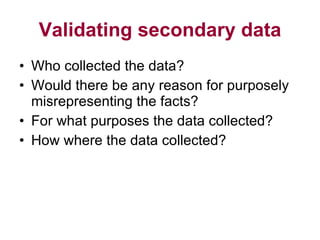 Buyer behavior of customers varies from country to country. The problems of gathering secondary data are. Reliability of the secondary data which.